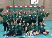 Zondag 21-maart 2015 moesten de meiden C hun KAMPIOENSWEDSTRIJD spelen, uit tegen ETC. Ze speelden tegen de nummer zeven, op zich geen bedreiging, maar dit team had wel gewonnen van de nummer 1. Halverwege de eerste helft stond het 0-1 voor Hellius. De verdediging zat goed dicht en later kwamen de wisseltjes langzaam opgang en ontstonden er leuke aanvallen. Julia hield de nul zelfs tot het einde van de eerste helft! De ruststand was 0-9. In de tweede helft stond de verdediging ook weer als een muur. Helaas viel er wel een tegendoelpunt. Helius kreeg twee penalty’s tegen, gelukkig hield Eva deze allebei. Er zijn mooie combinaties in de aanval voorbij gekomen waardoor er is gewonnen met 1-16!!!! En daarmee is Hellius ZAALKAMPIOEN 2014-2015!! Dames van harte gefeliciteerd!!!!!!